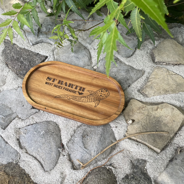 Simple, pratique et chaleureux, ce vide-poche en bois est gravé avec le nom "St Barth", pour une touche d’élégance insulaire dans votre entrée, sur une console ou un bureau.
